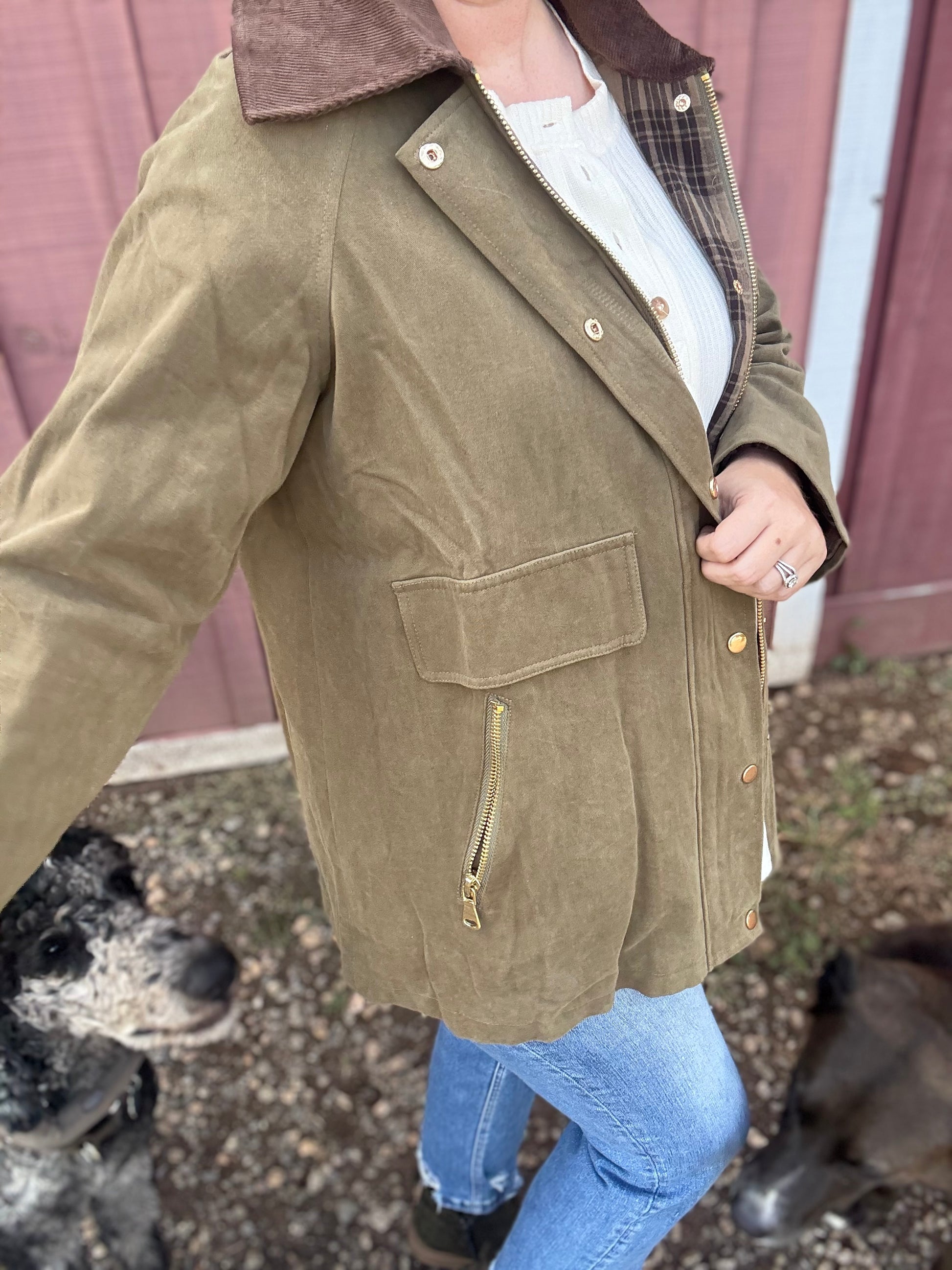 This trending jacket is one we knew we wanted to snag. It has a beautiful olive color with a corduroy brown collar and plaid inner lining. It has functional pockets and gold snaps for versatile wear. It has an oversized fit so we recommend sticking tts or even sizing down. It is the finishing classy touch to elevate any outfit. The quality is 10/10