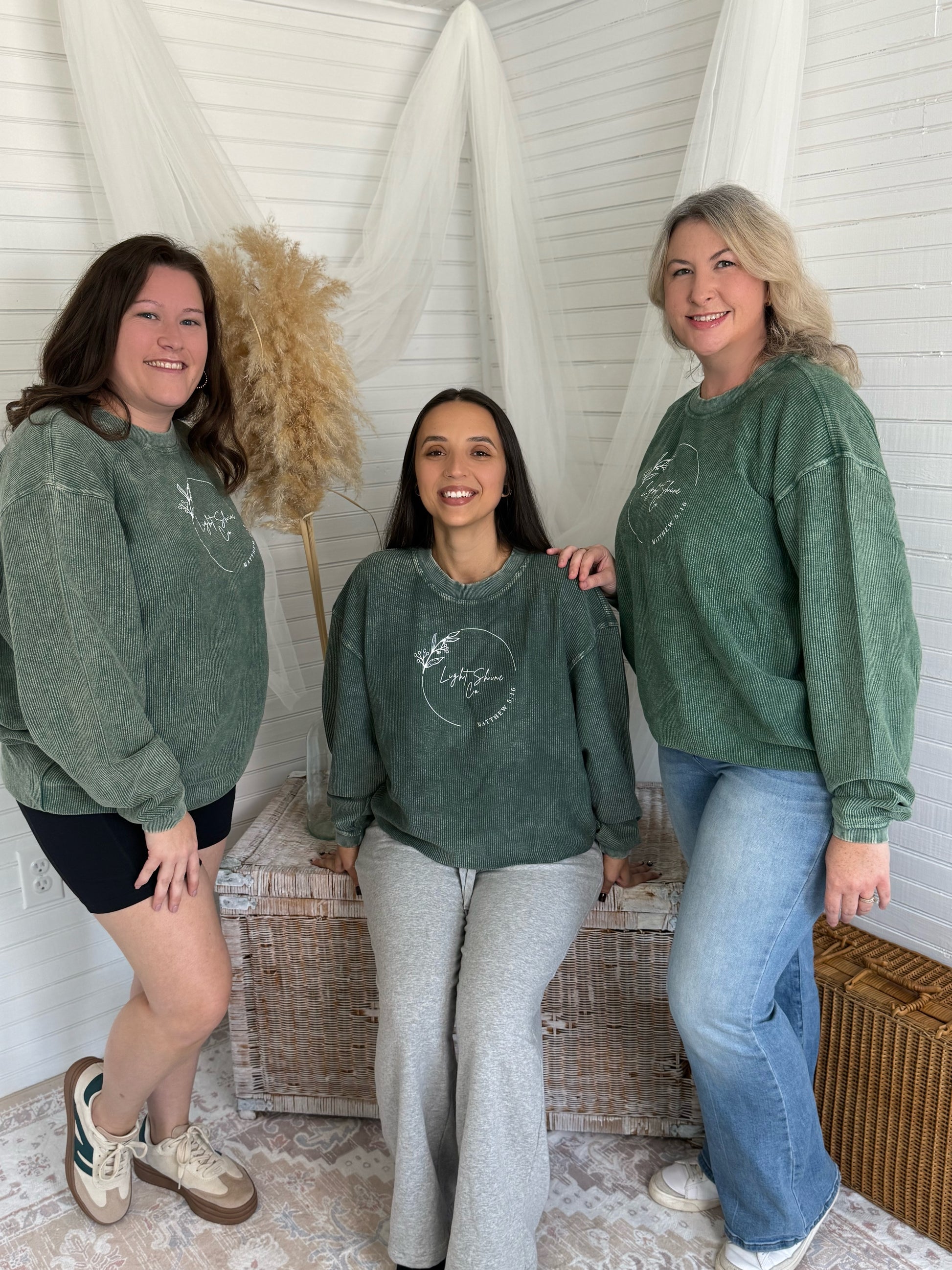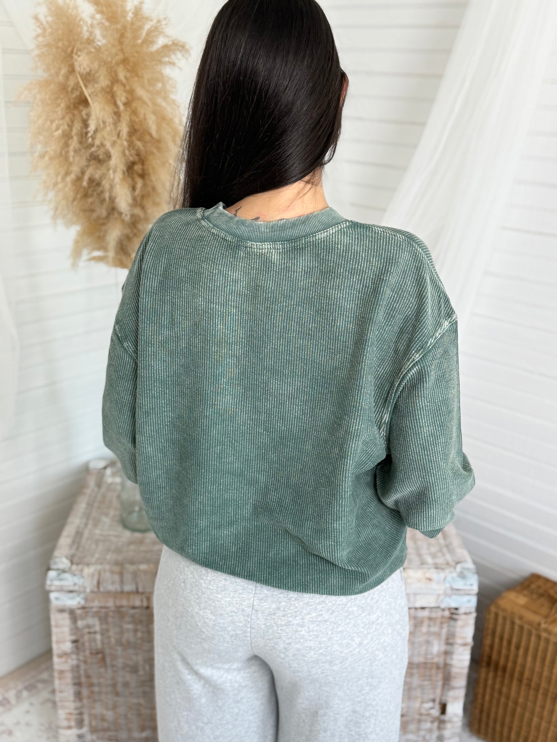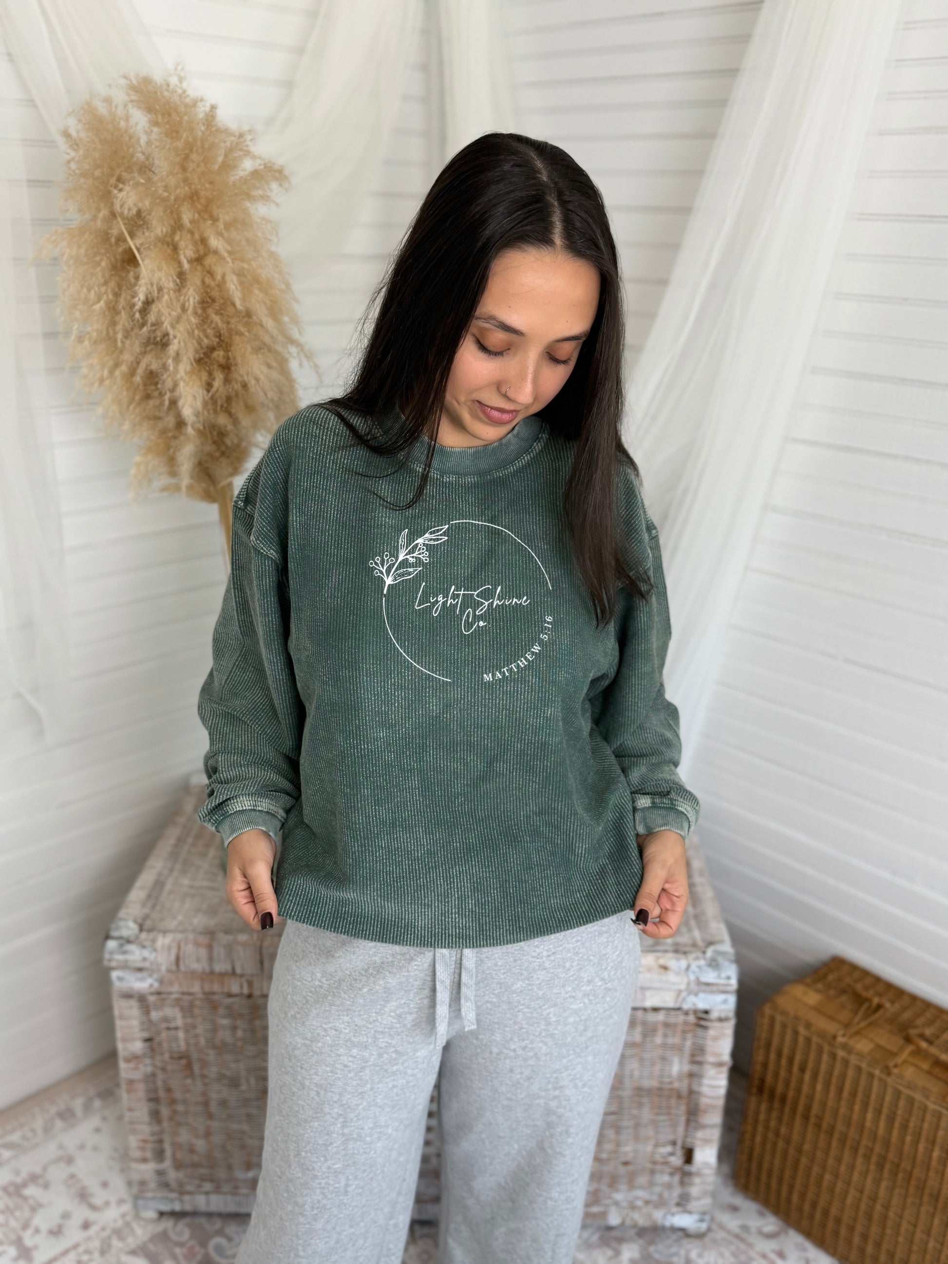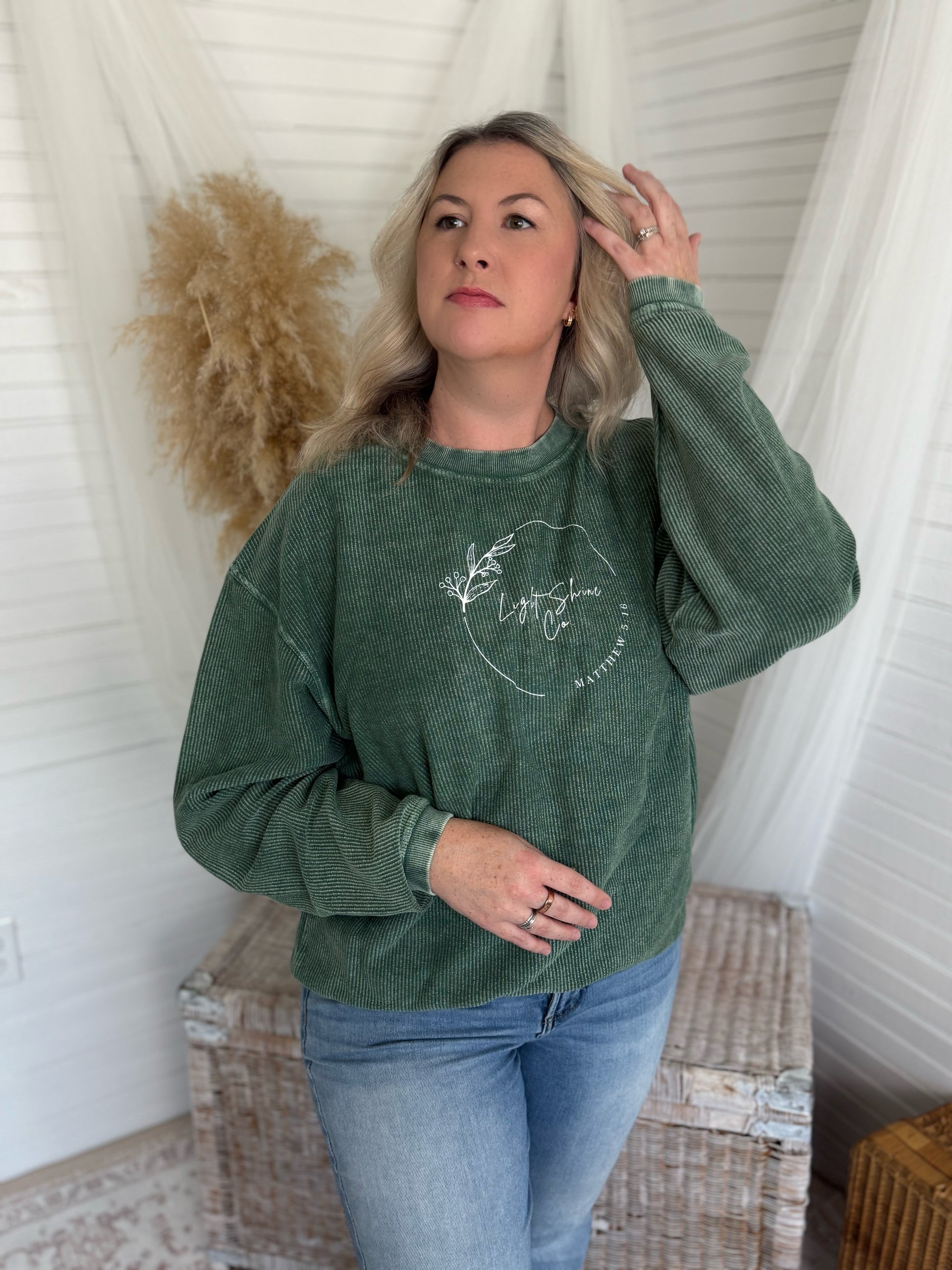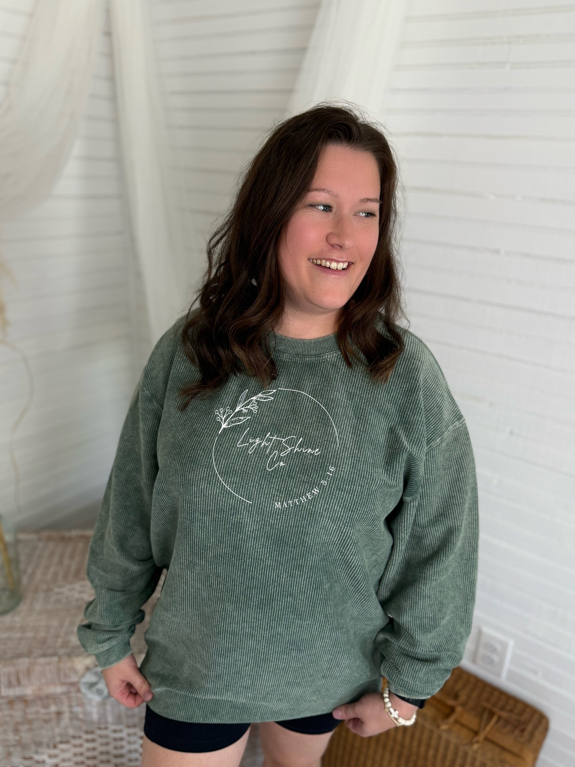 Meet our original custom logo crew, crafted from cozy vintage-washed corded fabric with a comfy ribbed neckline and cuffed hem. It features our store logo and verse on the front, rocking an oversized fit that’s light enough to wear all year. This Chicka-d brand gem scores a perfect 10/10 for quality, and the fresh green color is just right for fall vibes.