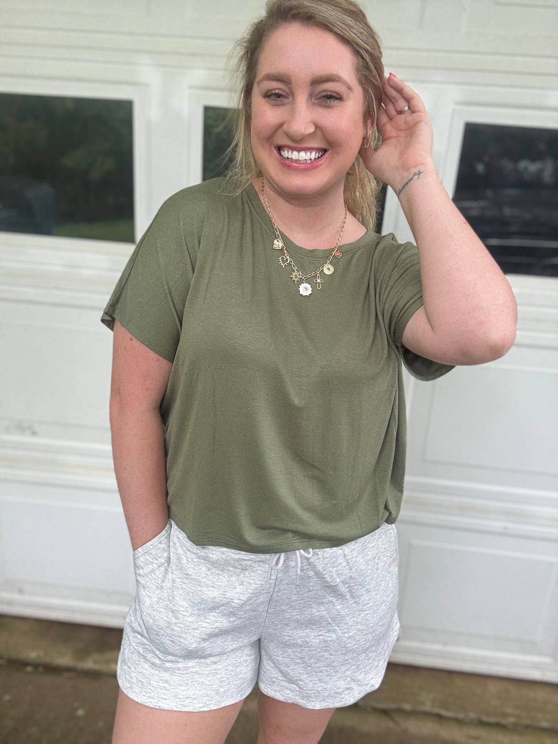 This everyday essential top is a great piece to have in your closet. It has a lightweight but buttery soft fabric that is perfect for daily wear. It is a great piece to dress up or down and is so flattering on all body types. It is coming in more colors soon. This is a staple you don't want to miss.