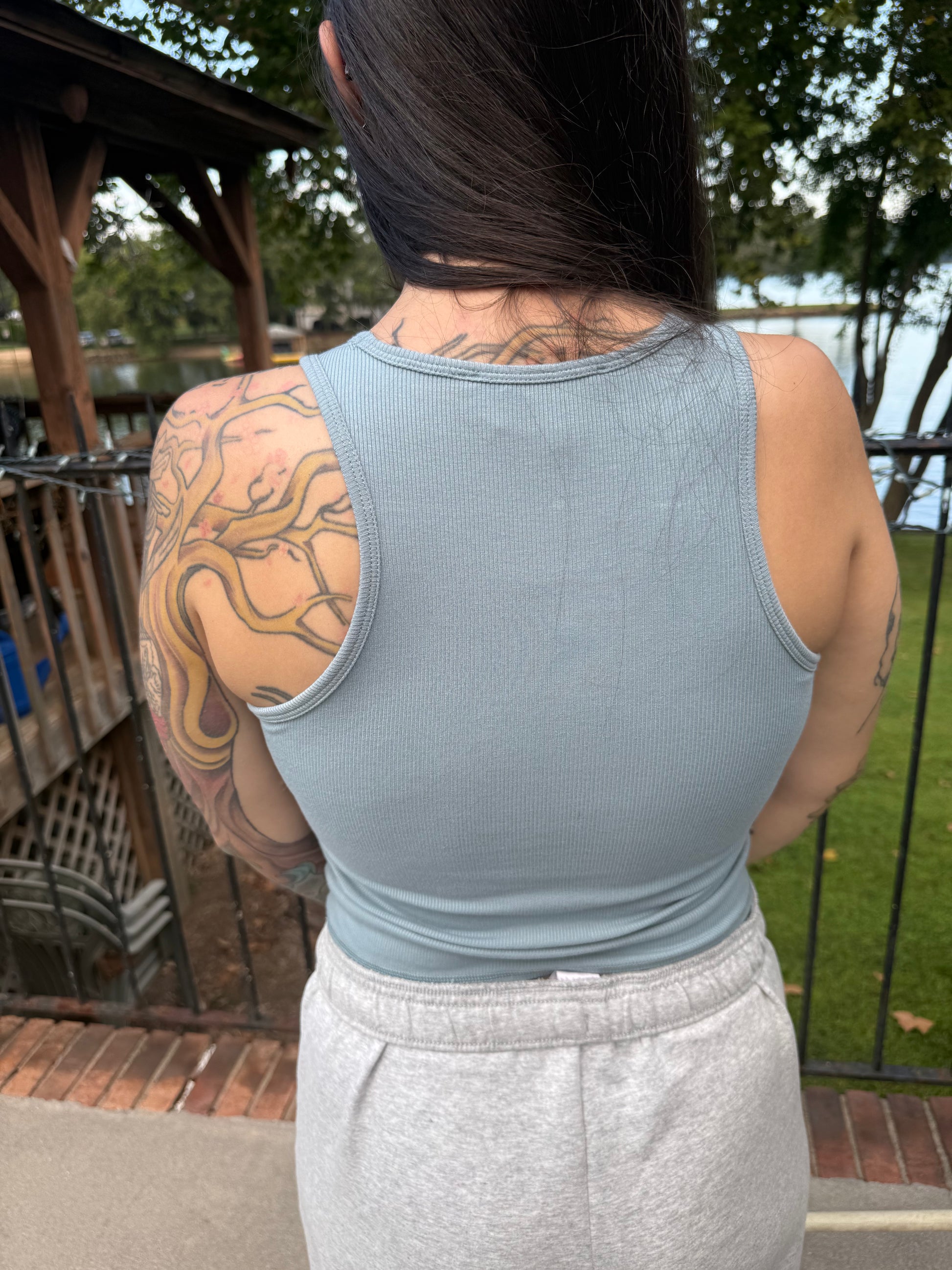 This adorable ribbed tank is the perfect layering piece for any wardrobe. It has a lightweight cotton fabric with a ribbed design, built in bra and removable pads and a racer back. It is great to wear on its own or underneath your favorite jacket or cardigan.